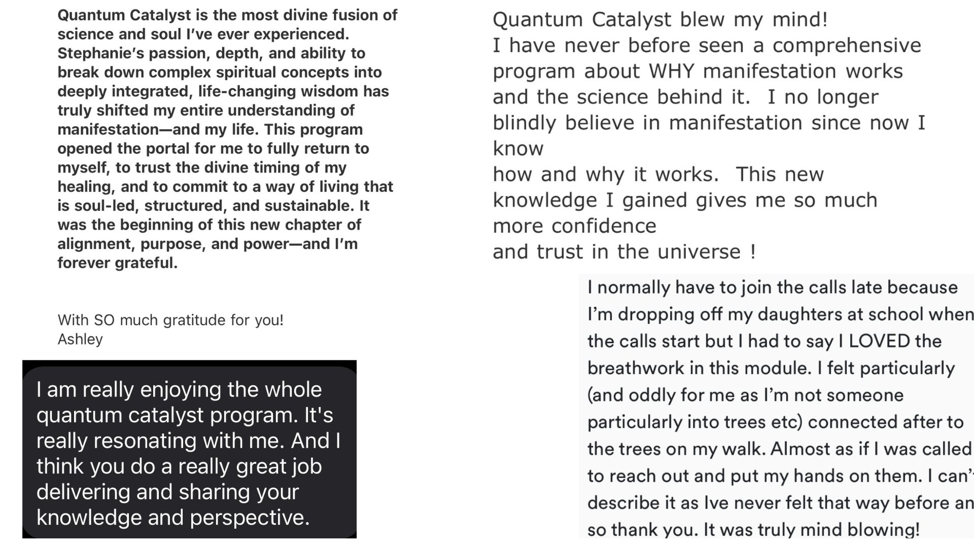 "Taking Stephanie Keith’s Quantum Catalyst mastermind was nothing short of life altering. I went into it expecting mindset shifts and manifestation tools, but what I got was a deep, eye-opening understanding of the actual science behind it all, quantum physics, quantum mechanics, and how they tie directly into the way we shape our realities.